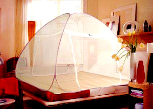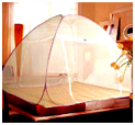 Our Foldable Mosquito nets- Made by durable materials, this mosquito NET not only gives you protection from mosquitoes, it also gives you the flexibility to use it ANY WHERE, ANY TIME. Foldable Mosquito Nets can be used on the BED, floor or even outdoors. It has Steel wires and is easy to setup and take down. It only comes in one mesh type, fine mesh, and a floor which keeps out everything including bed-bugs (sometimes a problem in hotels and in Dharmsalas with beds).